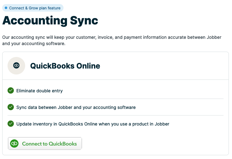 Note: Each QuickBooks account can only connect to one Jobber account at a time.