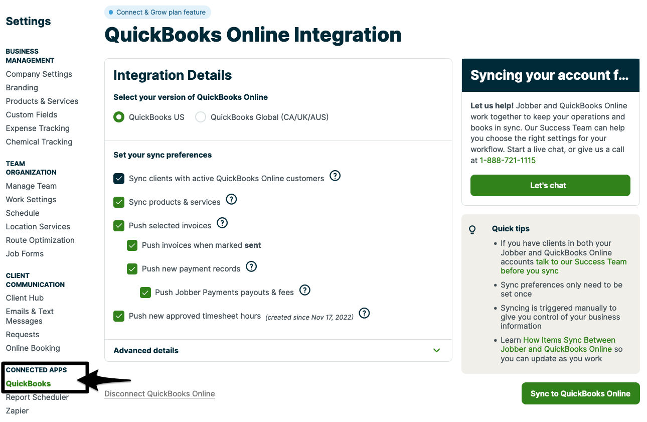 QuickBooks Online is an accounting software that can be integrated with Jobber. QuickBooks Online can be used to assist with payroll and accounting based on information from your connected Jobber account. Jobber syncs to both the US and Global versions of QuickBooks Online. Before you set up the sync, we suggest learning more about How Items Sync from Jobber to QuickBooks.