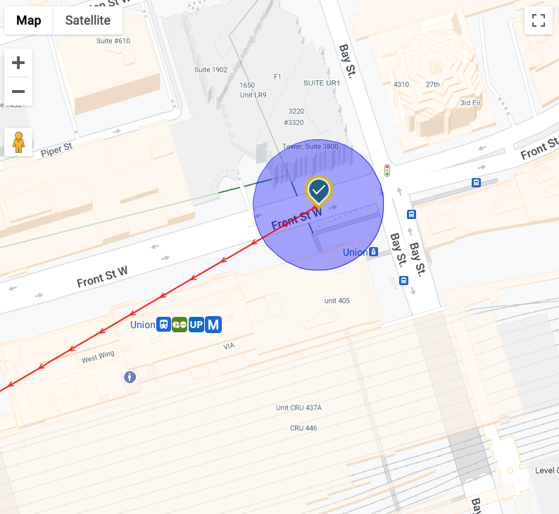 GPS waypoints are also visible from the map view of the calendar. Clicking on a blue pin on the map will show you the details of that waypoint: which user created it, the time, and what action was taken.