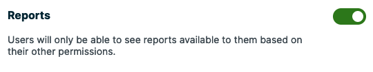 All admin users have access to reports as part of their permission set. In order for other users to view reports, their Reports permission box must be checked. To do this, an admin user will need to click the Gear Icon > Manage Team > User, select on Custom permissions from under the preset permission groupings and then make sure that Reports is toggled ON.