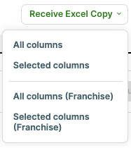Navigate to the report you want to export and from the Recieve excel copy button, select All columns (Franchise) to export all the columns available in this report to export this data across all linked accounts. If you only want to export the columns currently visible, select Selected columns (Franchise). If you only want to export the data from the account you are currently viewing, select the All columns or Selected columns options.Â
