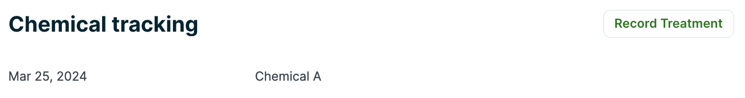 Chemical tracking (available on select plans) allows you to track chemical and pesticide usage. This is useful in jurisdictions that require chemical/pesticide use recorded for up to seven years. This section of the job shows chemical treatments that have been logged against this job. Select Record Treatment to add chemicals used on this job.