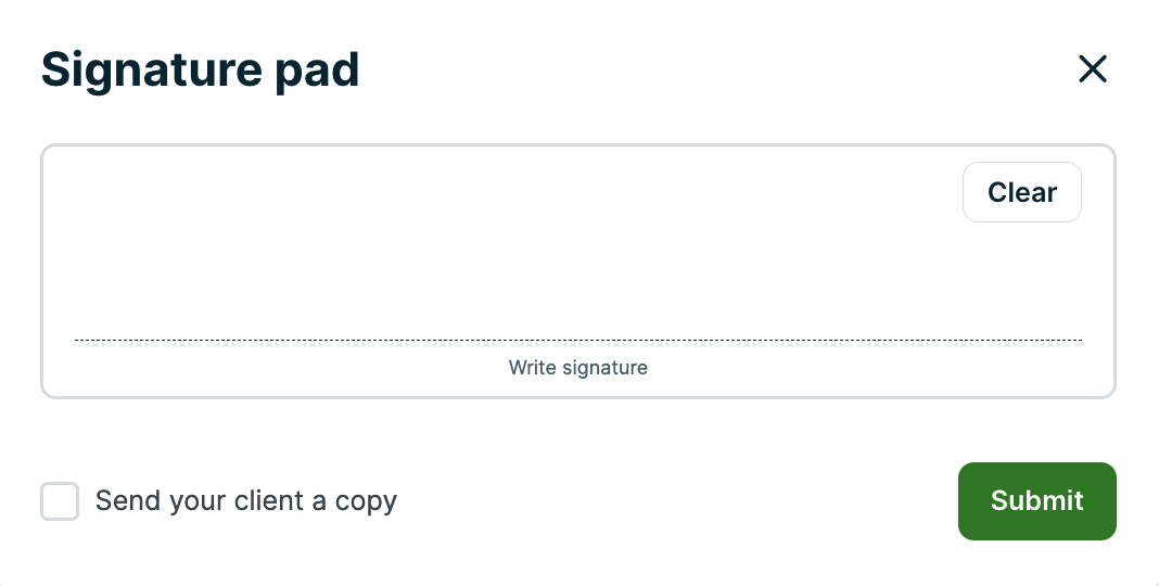Collect signature: This will bring up the signature pad that your client can sign. Check the box Send your client a copy to email the job PDF with their signature attached.