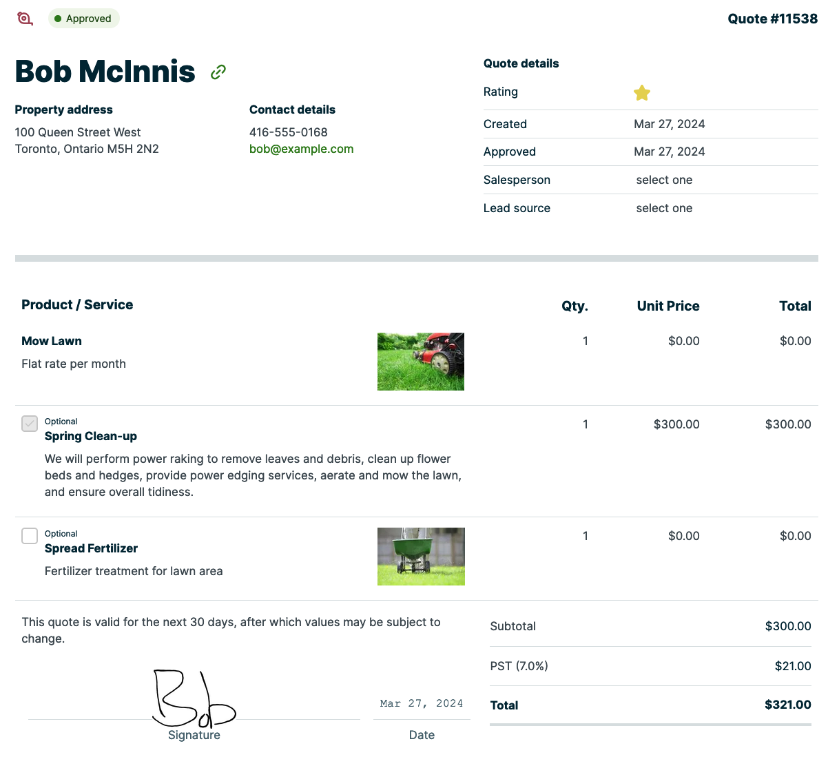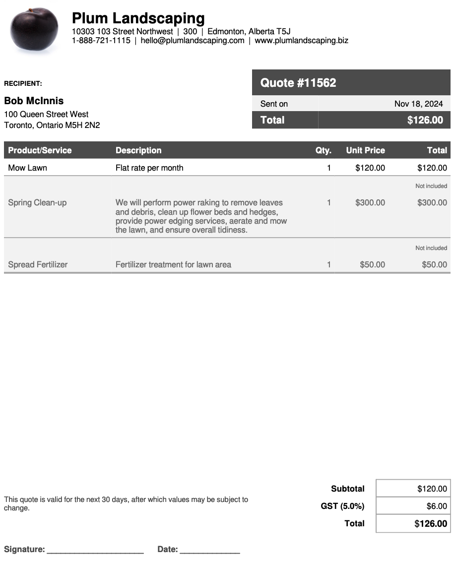 Optional line items on quote are available on select plans. View our current pricing plans.