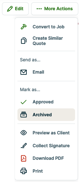 - Mark as Archived:Â Change the status of the quote to archived. This option works well when the work will not be moving ahead.Â