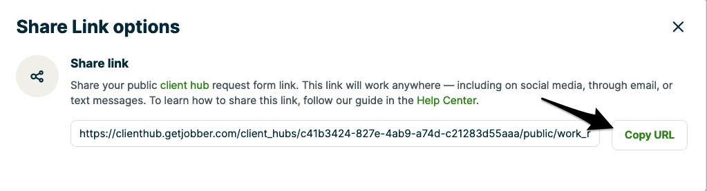 Copying your unique Jobber request form URL